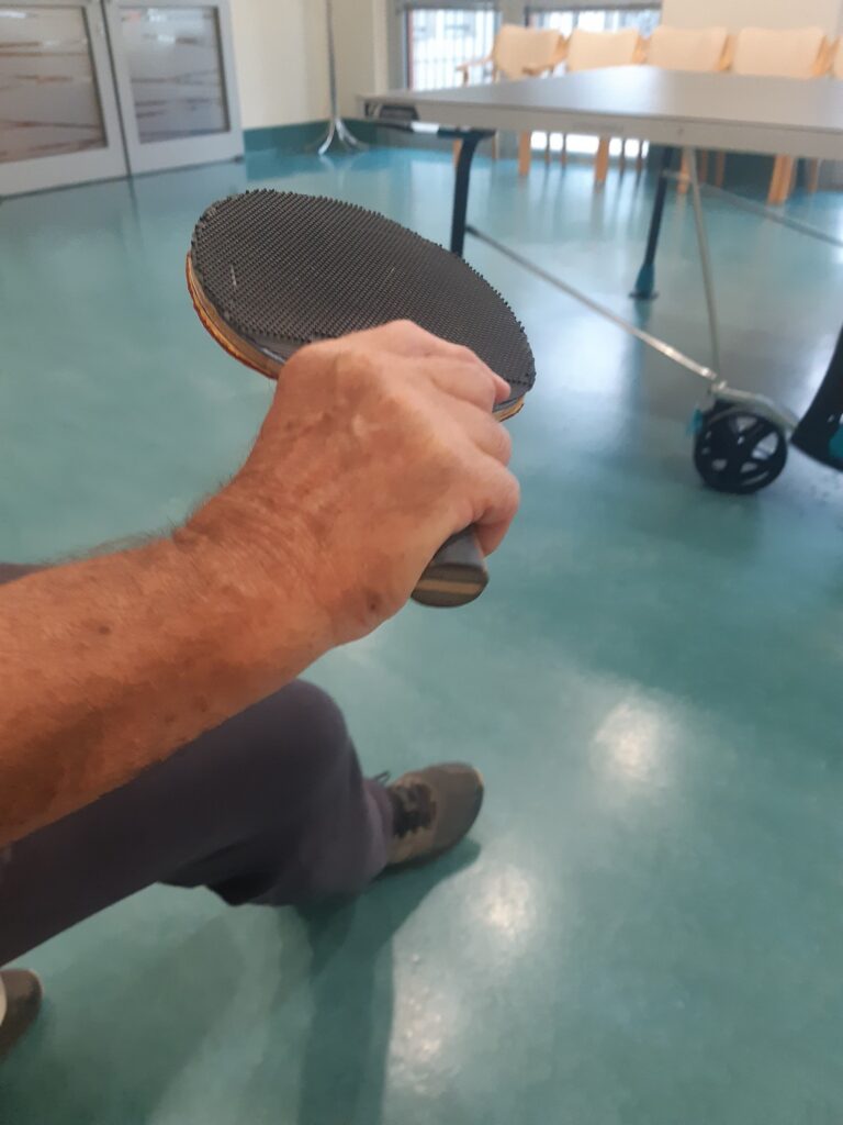…Vedno se rada vračam na obisk h gospodu z demenco, ki se kljub svoji diagnozi ne preda. Živi naprej sproščeno življenje in se veseli slehernega dne. Je velik ljubitelj športnih aktivnosti. Na žalost mu občasno ponagaja zapestje, a to ga ne ustavi. Že dolgo časa sva se dogovarjala, da bova v dvojicah igrala namizni tenis. Vedno je prišlo kaj vmes. Danes pa nama je le uspelo odigrati prvi set. Gospod me je naučil, kako se pravilno drži lopar ter kako v podaljšanem loku servirati in odbiti žogico. No to pa je bilo zabavno medgeneracijsko učenje! Seveda me je premagal v vseh potezah.
